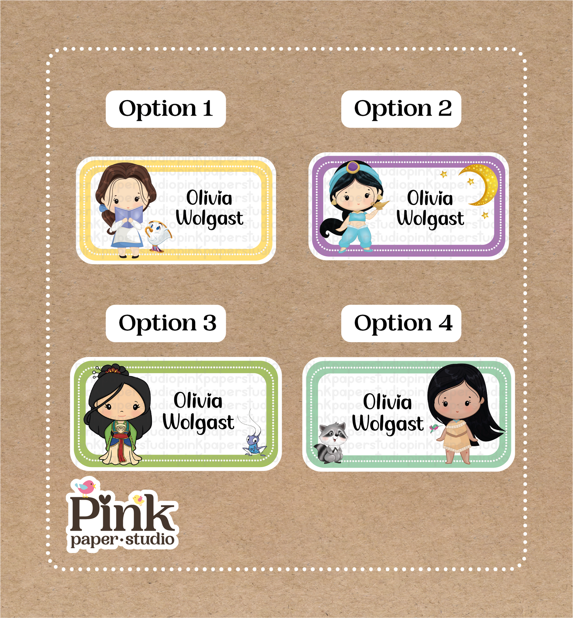 Especifique el texto o nombre requerido que desea en las pegatinas, y el número de la OPCIÓN que desea comprar en la sección de notas durante el pago.